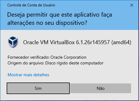 6. Execute o assistente de instalação do VirtualBox e marque as opções padrões (E responda Sim quando perguntado).